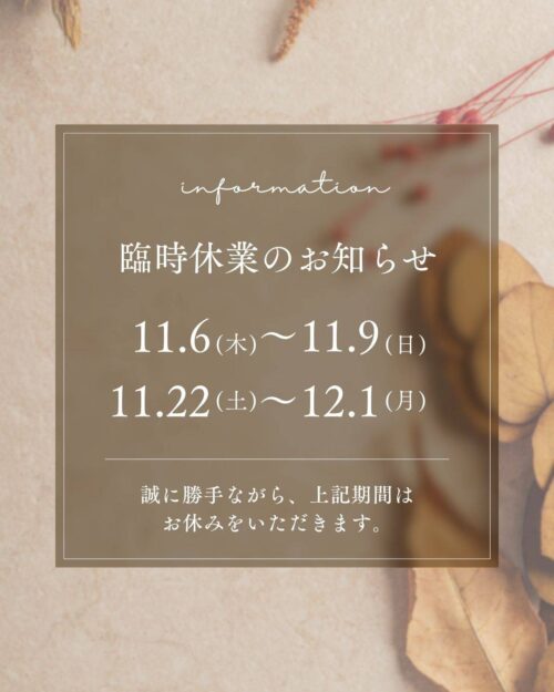11月臨時休業のお知らせ