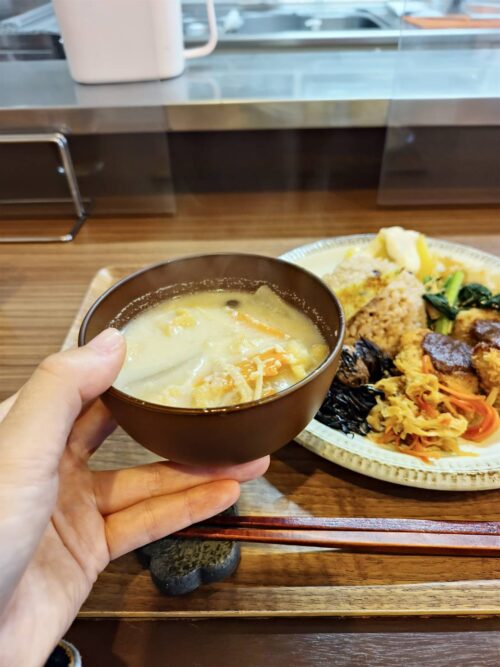 今日のメインは高野豆腐の味噌カツと、粕汁も!