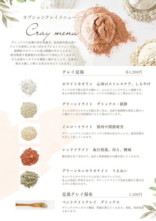 足つぼにプラスできる、クレイを使ったオプションメニュー!ご存知ですか?