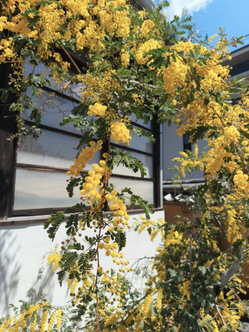 今はミモザが見頃、そしてもうすぐぼたん桜が満開を迎えそうで、春らしい可愛らしいお庭が広がっています。